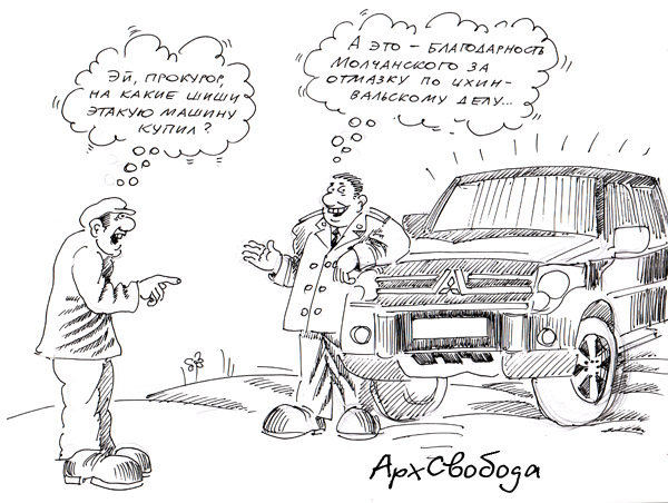 Архангельск. Россия. Карикатуры Валерия Житнухина. Прокурор, Джип и Молчанский